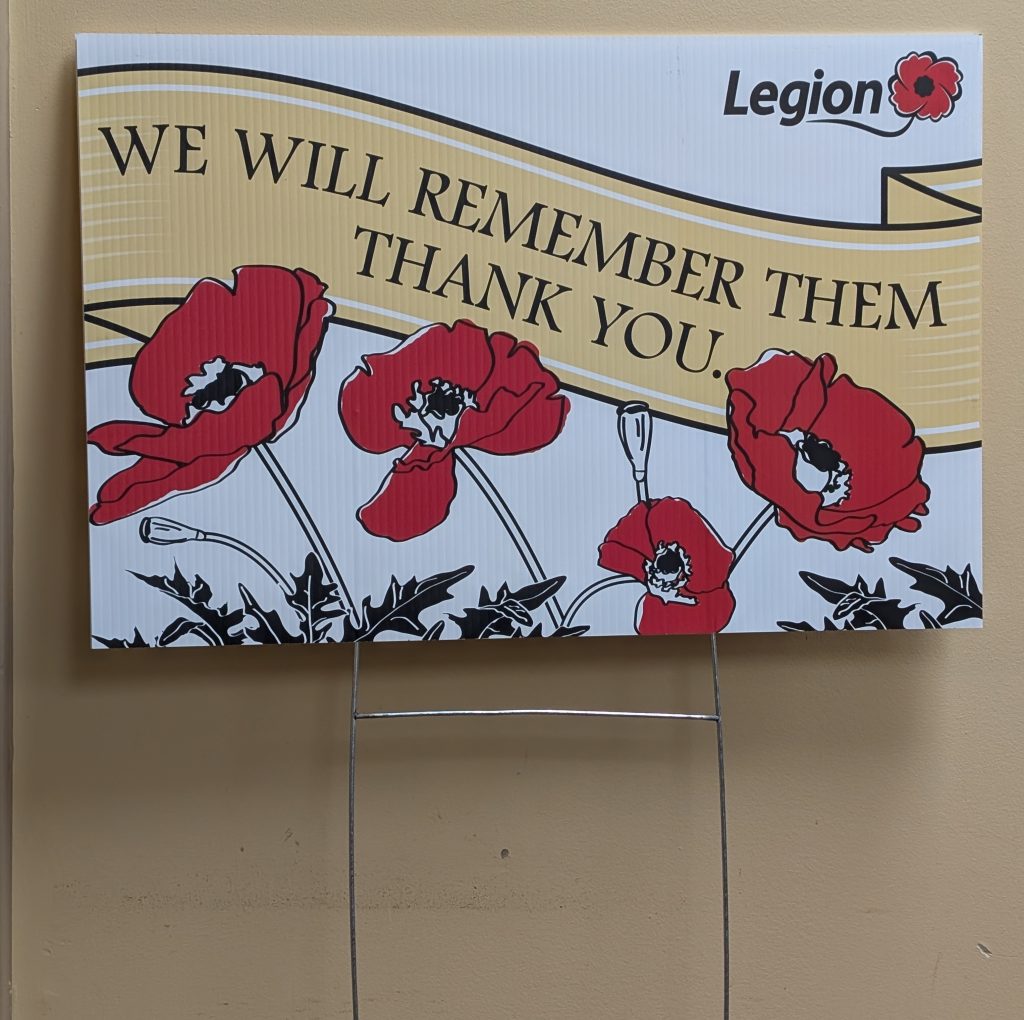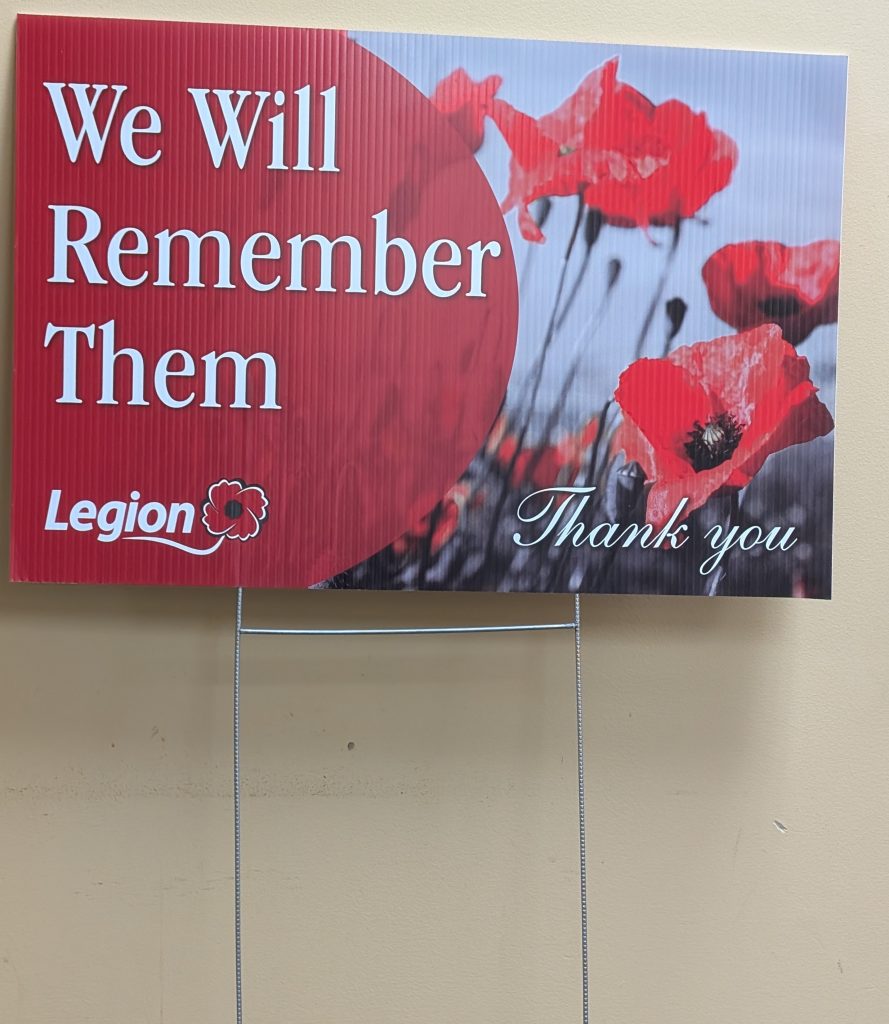 Two types of Remembrance Day Signs, as pictured below, are available at the Legion Clubroom...