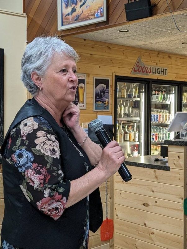 Lucky Card Draw winner Diane Hayward,left, won $3981.00 by picking the 10 of spades. Volunteer Wendy Forrest presented a cheque on June 18, 2022.